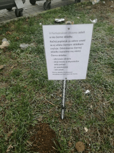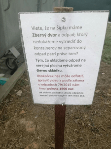 Po porade s Mestskou políciou sme sa rozhodli najprv robiť osvetu, zvýšiť pohyb polície v okolí a vyzývať obyvateľov k fotografovaniu, nahrávanie si ľudí, ktorí čiernu skládku vytvárajú a nahlásenie na políciu. Dobrovoľníci z okolia skládku zlikvidovali a asi dva týždne bol pozemok čistý, potom prišiel pán, ktorý chcel opäť čiernu skládku založiť. Bol nafilmovaný. Následne sme osadili jednoduché “tabuľky”, ktoré informujú neprispôsobivých obyvateľov o následkoch ich konania. Celková cena opatrenia 2 eurá.